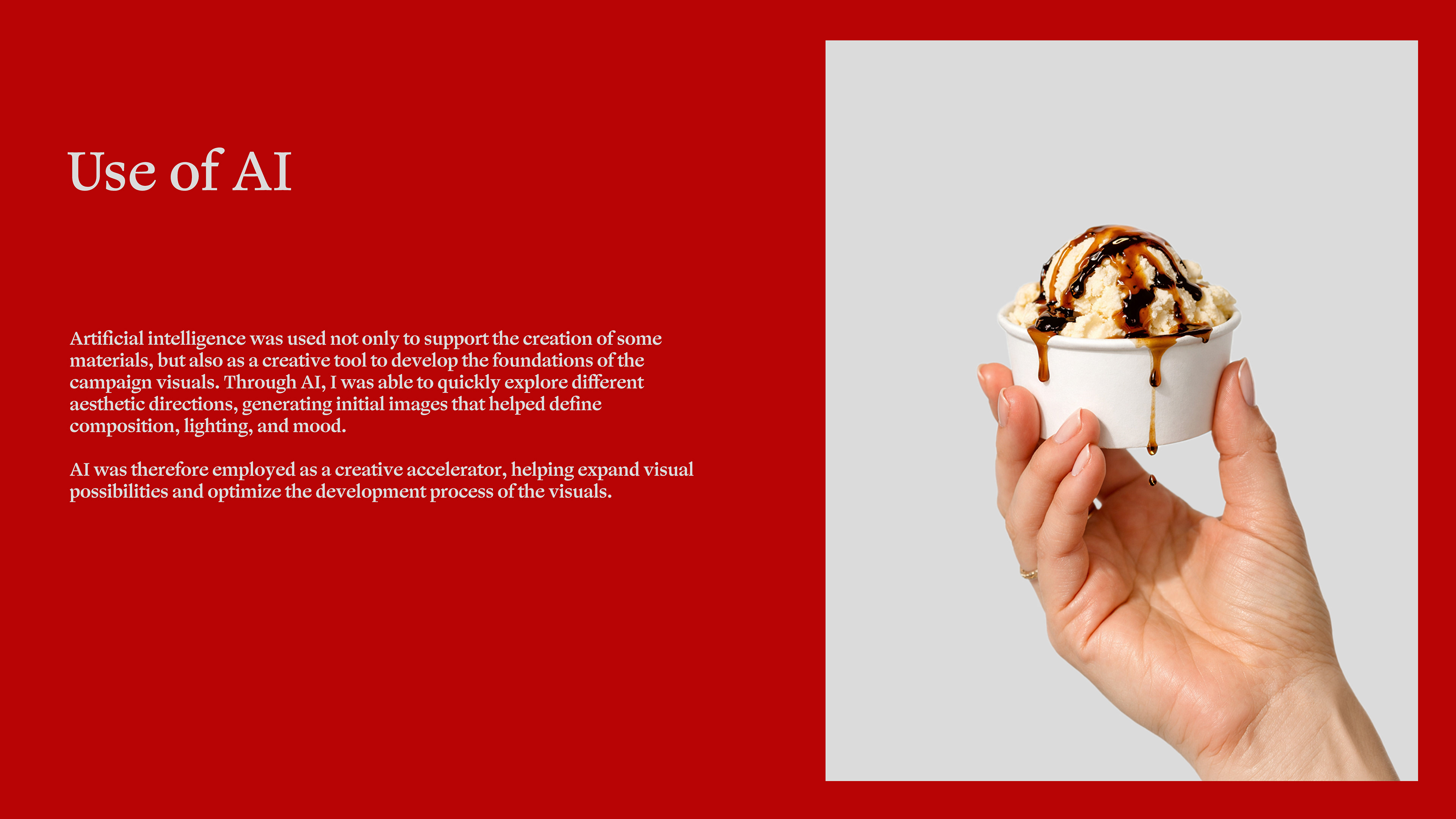 The animation was designed to enhance the product through smooth movements and realistic details, with the aim of communicating quality and sophistication while maintaining an aesthetic consistent with the campaign concept.