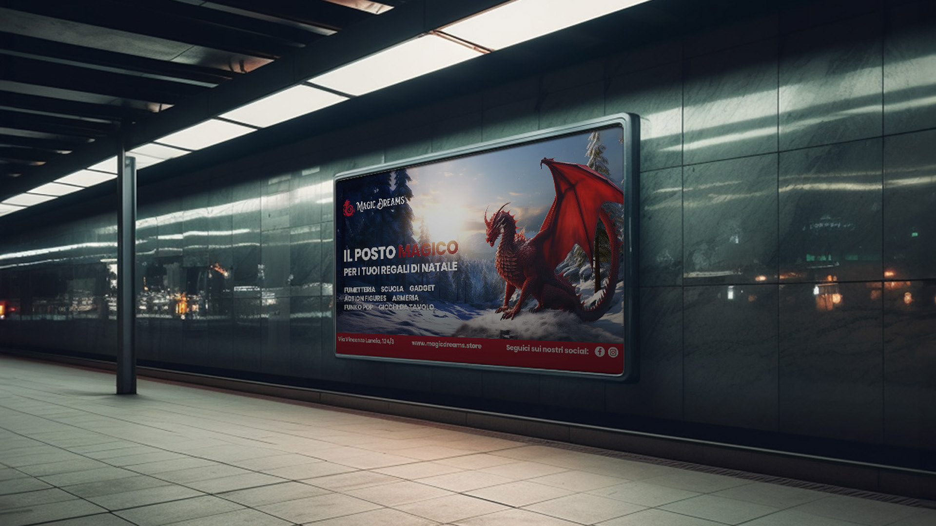 • Store advertising: affissioni e materiali promozionali per vetrine e spazi interni, materiali fieristici, pensati per immergere il cliente nell’universo dei loro personaggi preferiti.