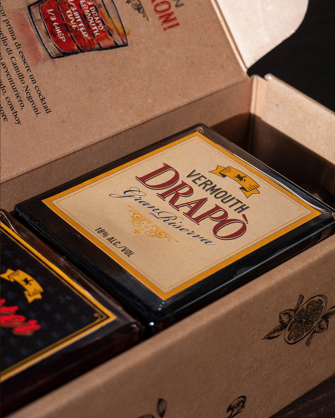 Una serie di visual di bottiglie di vermouth generate con IA, progettate per sperimentare composizione, luce e atmosfera.
